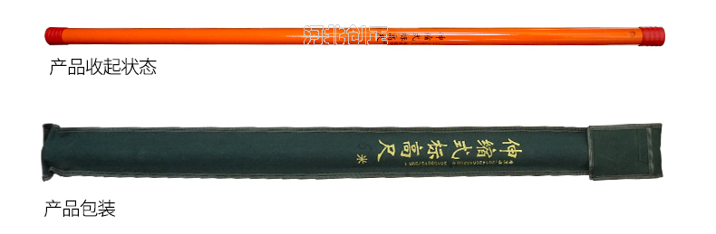 4、測(cè)量時(shí),由內(nèi)層絕緣桿向上抽起,每根絕緣桿的刻度對(duì)應(yīng)外面一層絕緣桿的尺寸刻度,然后旋緊絕緣桿,測(cè)高桿的金屬掛鉤掛在高壓線路上,此時(shí)外側(cè)的絕緣桿上沿對(duì)齊抽起的絕緣桿的刻度;